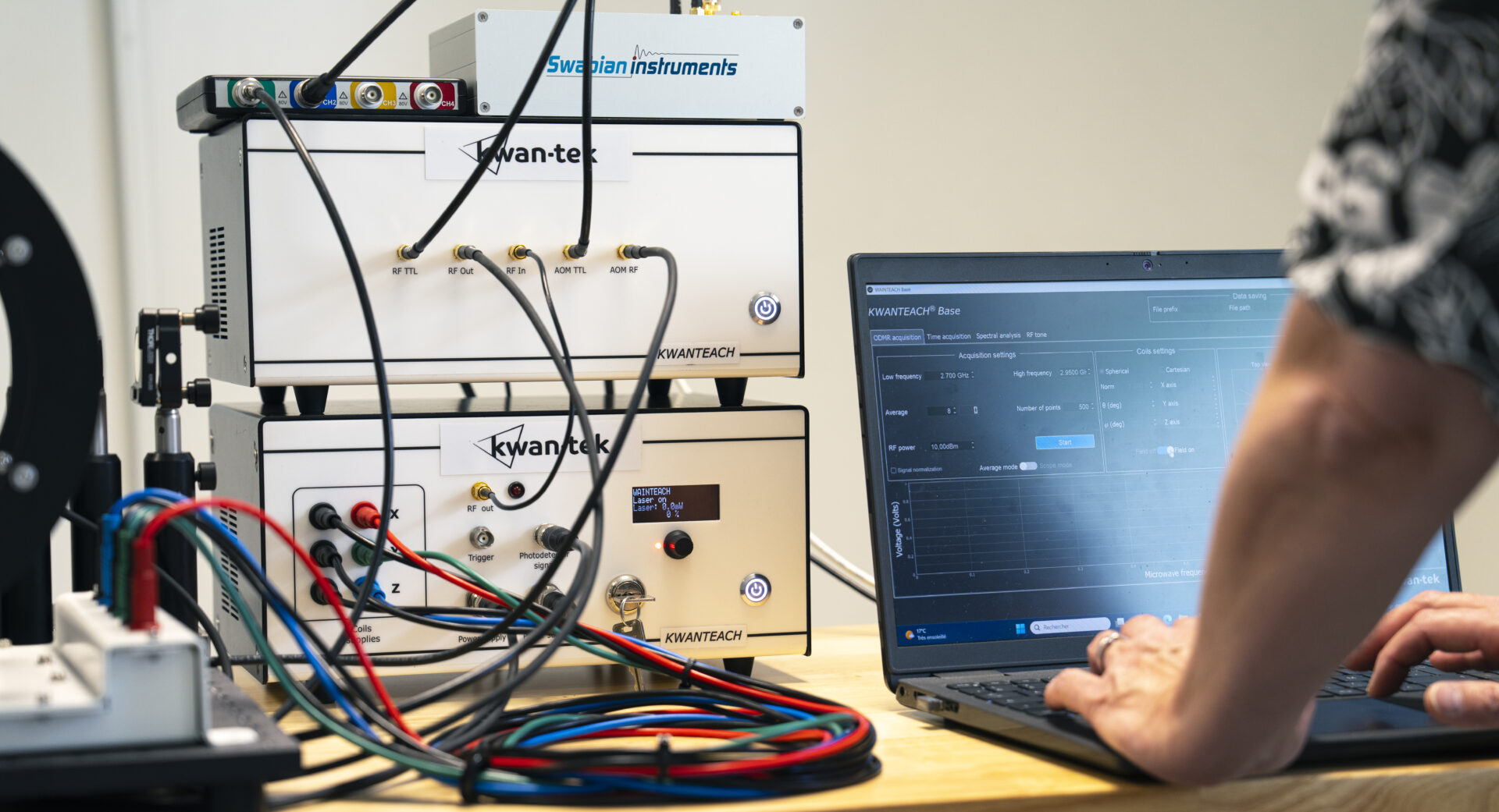 KWAN-TEK develops, manufactures and supports quantum sensing solutions that meet the specific demands of education and academic research. Our NV center diamond technology lies at the core of our instruments, combining exceptional measurement stability with high resolution and resilience — even in complex lab environments.